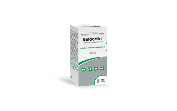 BETACOLİN Enjeksiyonluk Süspansiyon, amoksisilin ve kolistin olmak üzere iki antibiyotikten oluşan bir preparattır. Gram pozitif ve gram negatif bakterilere karşı etkili yarı sentetik bir penisilin olan amoksisilin bakteri hücre duvarı sentezini inhibe ederek etki eder. Polimiksinlere benzer siklik bir polipeptid antibiyotik olan kolistin, E. coli, Salmonella spp., Enterobacter aerogenes, Haemophilus spp., Pseudomonas spp., Shigella spp., Bordetella spp. gibi Gram negatif mikroorganizmalara karşı selektif olarak etkilidir. Gram pozitif bakterilere karşı etkililiği ise zayıftır. Kolistin intraselüler materyal kaybı ile birlikte hücre membranını bozarak etki eder. Ancak, tam olarak anlaşılmamış olan direnç kavramı nadir görülmektedir.